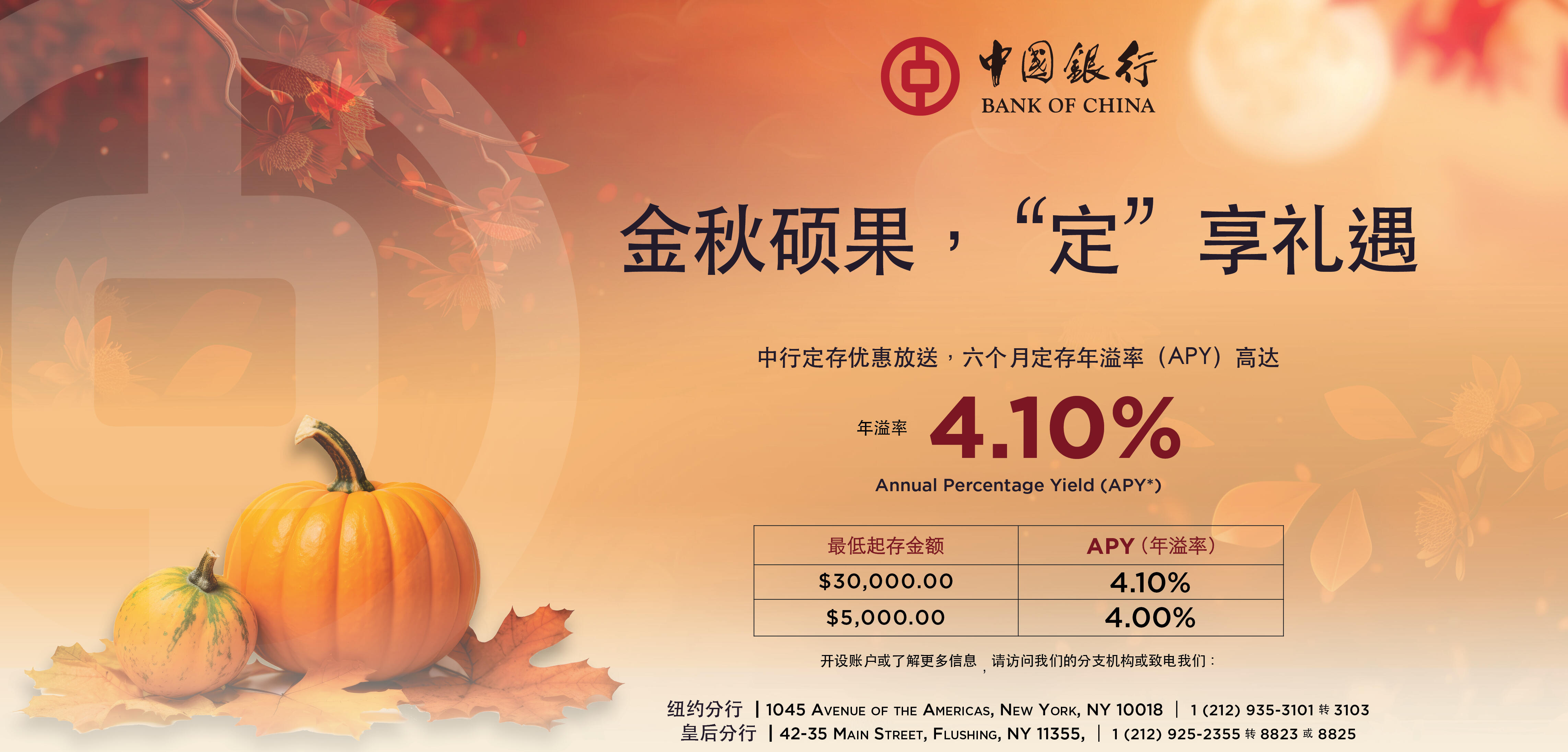 中行定存优惠助您金秋财运亨通