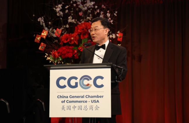中国驻美国特命全权大使谢锋莅临晚宴并发表主旨演讲。他充分肯定了美国中国总商会克服困难、服务企业、搭建桥梁的卓有成效工作,以及为推进中美互利合作作出的积极贡献。